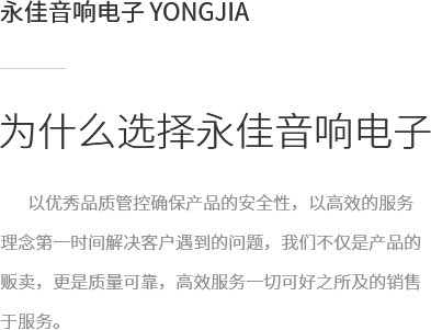 拉薩永佳音響電子有限公司 拉薩永佳音響電子有限公司坐落于美麗富饒的圣城拉薩,公司前身為拉薩昊成音響電子銷售有限公司,注冊資金為300萬元,成立于2010年3月公司地址位于西藏拉薩市貢布塘南側1號薩博廣場4-5、4-8號。拉薩永佳音響電子有限公司主營專業(yè)舞臺音響設備、會議音響系統(tǒng)設備、公共廣播音響系統(tǒng)設備、網(wǎng)絡及監(jiān)控設備、多媒體教學設備、多媒體投影機、幕布、弱電線材、辦公設備、LED液晶顯示屏品種齊全、服務效率、拉薩